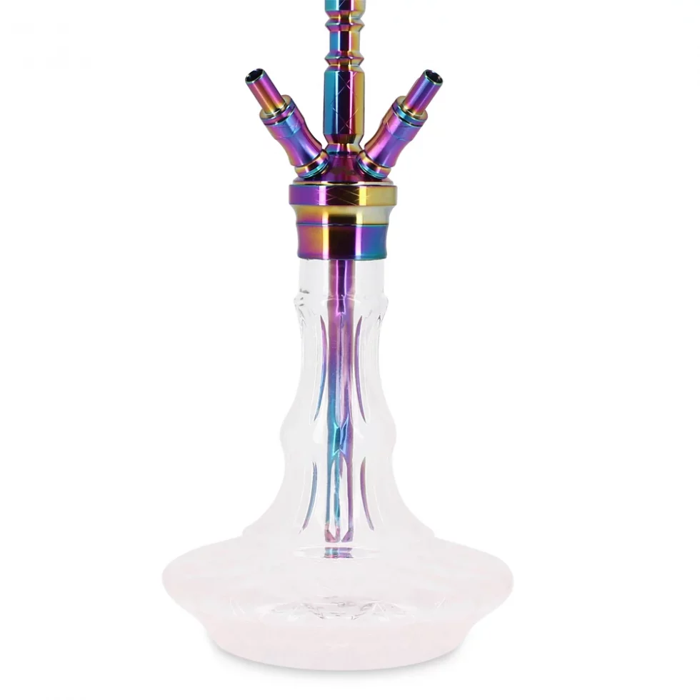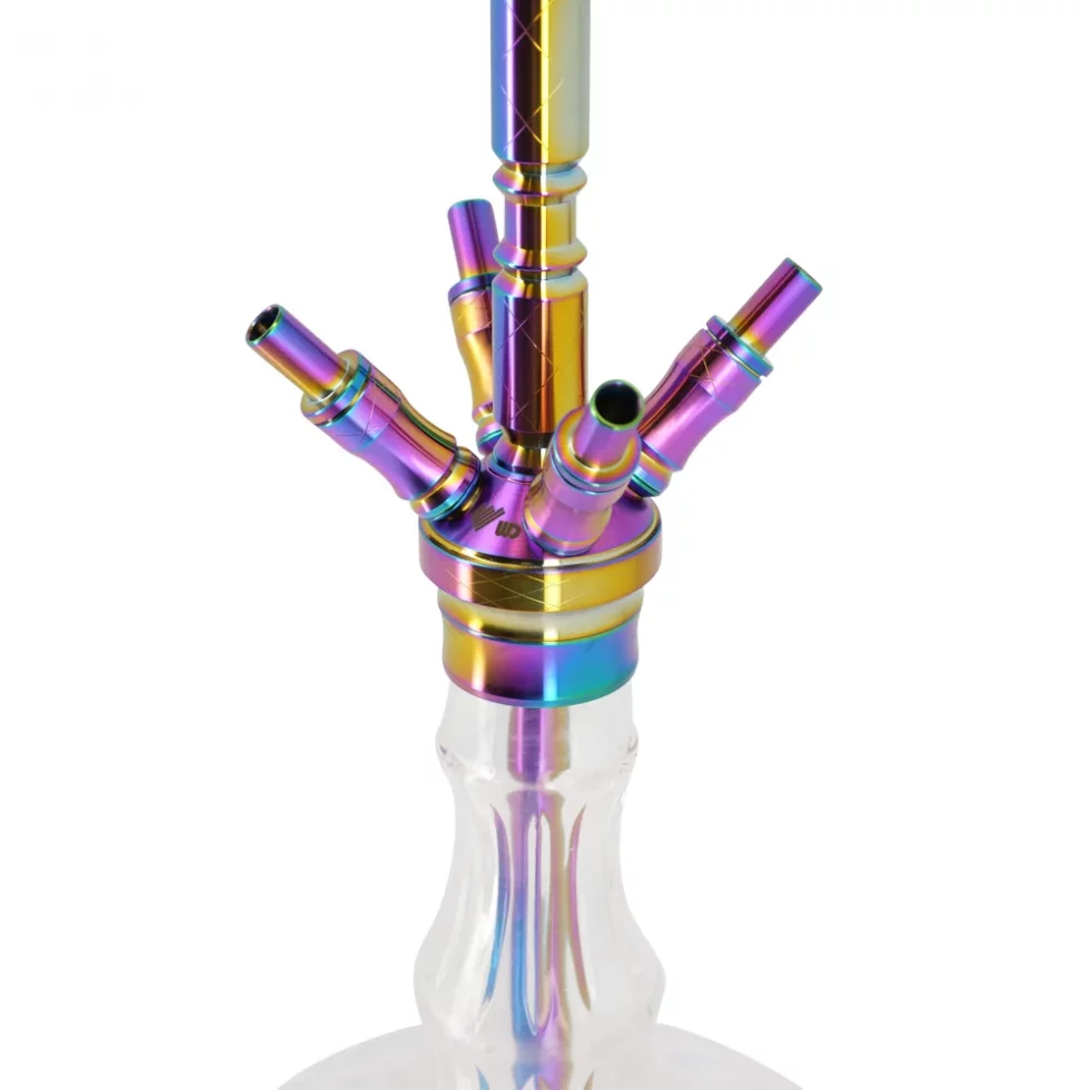 Die WD Hookah - Edelstahl Shisha G30B-9 ist eine sehr besondere Wasserpfeife unter all unseren WD Shishas, denn Ihre Optik macht sie zu einem absoluten Highlight. Die Regenbogenfarben variieren, je nach Lichtverhältnis und Blickwinkel. Diese WD Hookah Shisha wird mit Sicherheit eine Menge Komplimente einbringen, da so etwas sieht man nicht jeden Tag. Nicht nur die Optik dieser Wasserpfeife ist besonders, denn der Edelstahl der für unsere WD Hookah Shishas verwendet wird ist von höchster Qualität. Dadurch werden sie langlebig, rostfrei sowie geschmacksneutral. Jedoch setzt dies voraus, dass das Material bestens verarbeitet wird und dies garantieren wir Ihnen, indem wir bei jedem Produktionsschritt auf maximale Präzision achten. Wir können Ihnen dadurch eine WD Shisha anbieten, die eine erstklassige Rauchentwicklung und perfekten Durchzug besitzt.